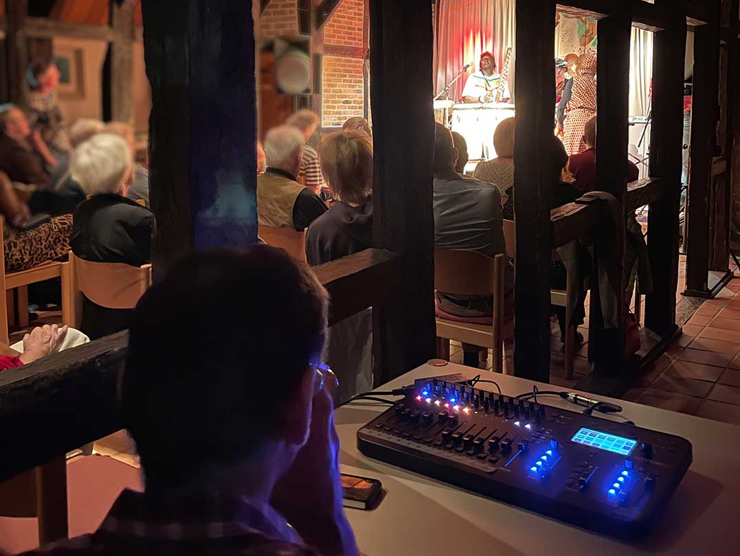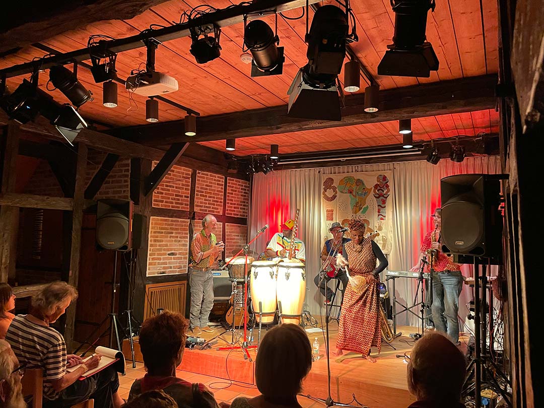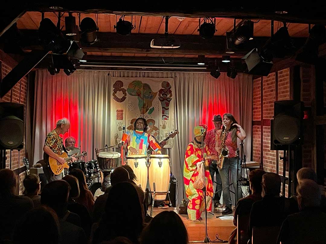 Die Atmosphäre im Makens Huus war von Anfang an magisch. Die Musiker schufen sofort eine lässige Stimmung, die alle in ihren Bann zog. Reggae, Jazz und die Rhythmen der Afro-Mandiko-Musik vermischten sich zu einem einzigartigen Sound, der die zwar nur wwenige Tänzerinnen und Tänzer in seinen Bann zog – diese aber dafür umso mehr „bewegte“! Gesungen von Kekso und begleitet von seiner Band und der charmanten Tänzerin und Background-Sängerin Tina, liegt die Spannung von „Kekso and Tery Kafo Band“ im Wechsel von feurig-spritzigen Tanzrhythmen bis hin zu lyrischen Liedern, die Kekso auf der Kora und mit Trommeln begleitet.
