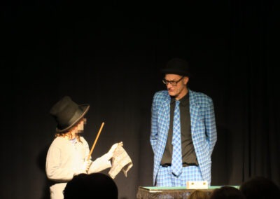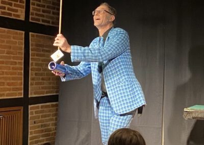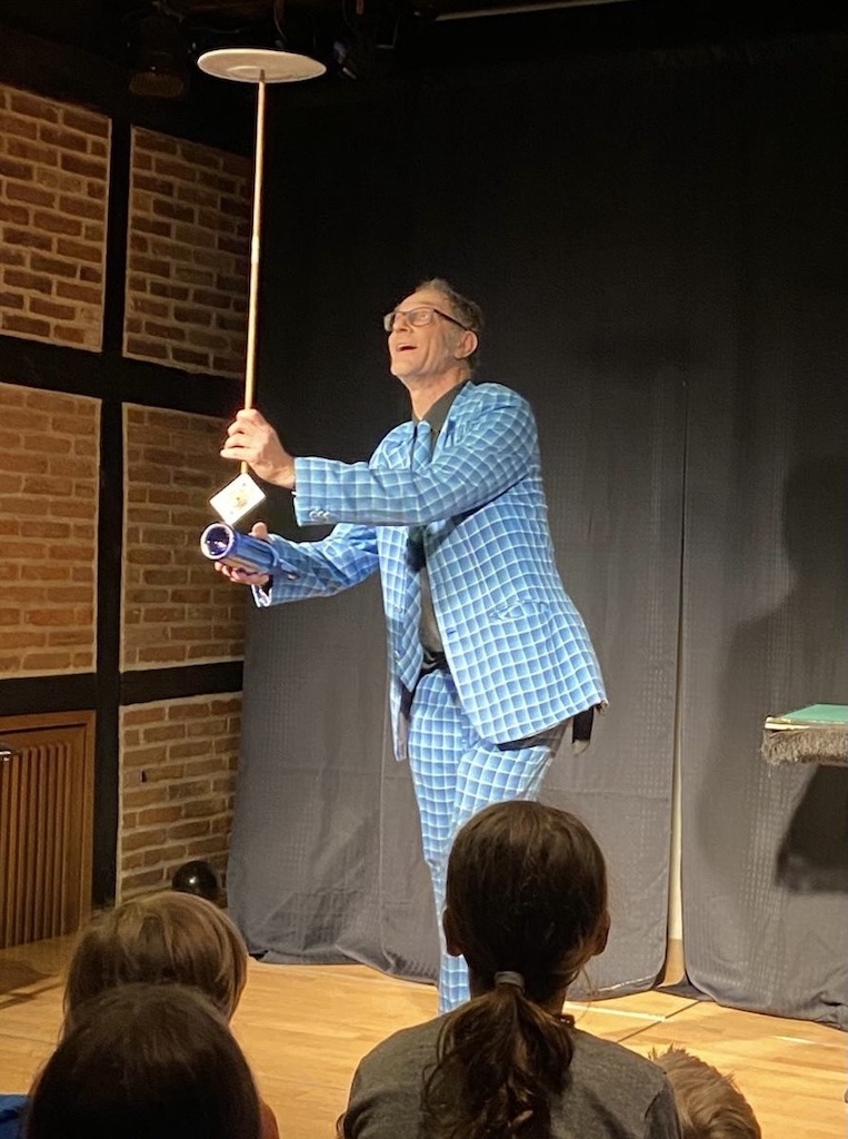 Andy jonglierte mit Bällen und auch mit Tüten. Spielkarten wurden vom Publikum erraten und Gegenstände verschwanden vor den Augen der Zuschauer, um dann auf unerklärliche Weise woanders wieder aufzutauchen. So verschwand vor aller Augen der Geldschein einer Zuschauerin. Dank eines kleinen Zauberlehrlings und Andys zauberhaften Geschicks, konnte der Geldschein nach mehreren Versuchen wieder herbeigezaubert werden. Nicht nur das Publikum und die Zuschauerin waren über das Wiederauftauchen erleichtert, auch Andy fiel ein großer Stein vom Herzen. Die Kinder staunten über Andys magische Tricks, während die Erwachsenen die cleveren Wortwitze und die humorvolle Präsentation genossen. Ein magischer Nachmittag für die ganze Familie.