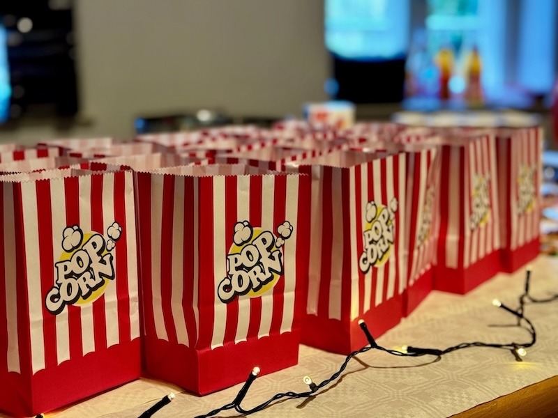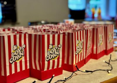 Statt Eintrittskarte wurden die Hände der Gäste mit einem kleinen Stempel versehen. Schon beim Hereinkommen stieg den Familien der herrliche Duft von frisch gemachtem Popcorn in die Nase. Viele konnten es nicht abwarten, sich eine leckere Popcorn-Tüte zu holen.